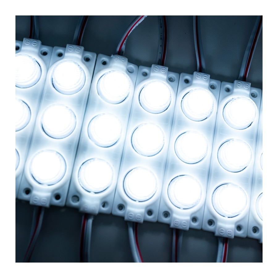 Cada módulo é composto por 3 chips do tipo SMD2835 conectados com um cabo entre módulos de aproximadamente 92mm.