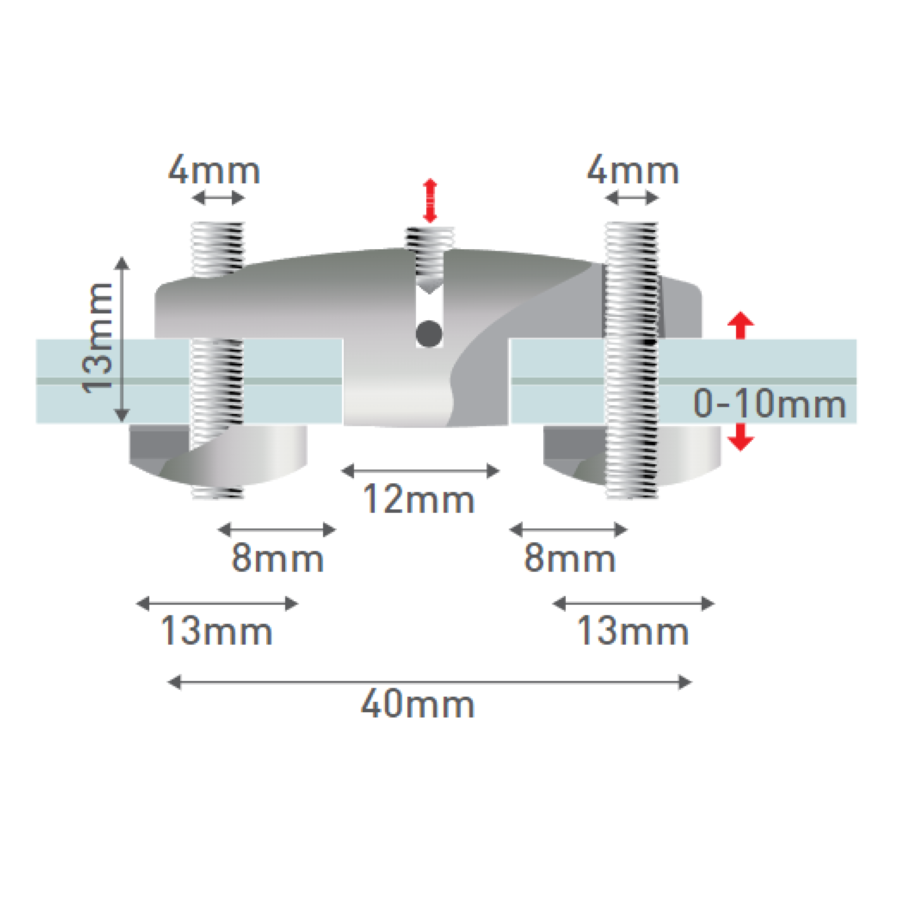 - Espessura do painel: máx. 10mm mais com parafuso allen mais longo.