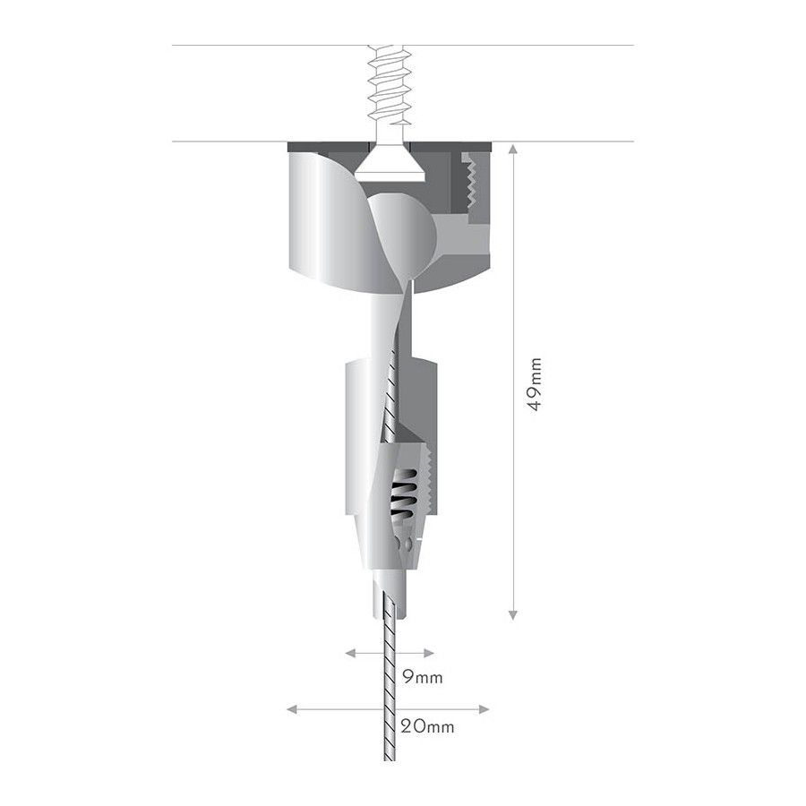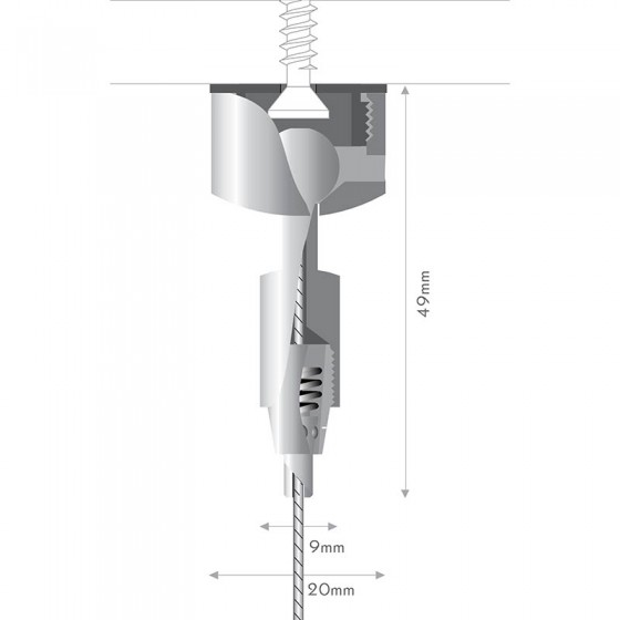 Fixador de teto universal para cabo de aço ou fio de nylon.