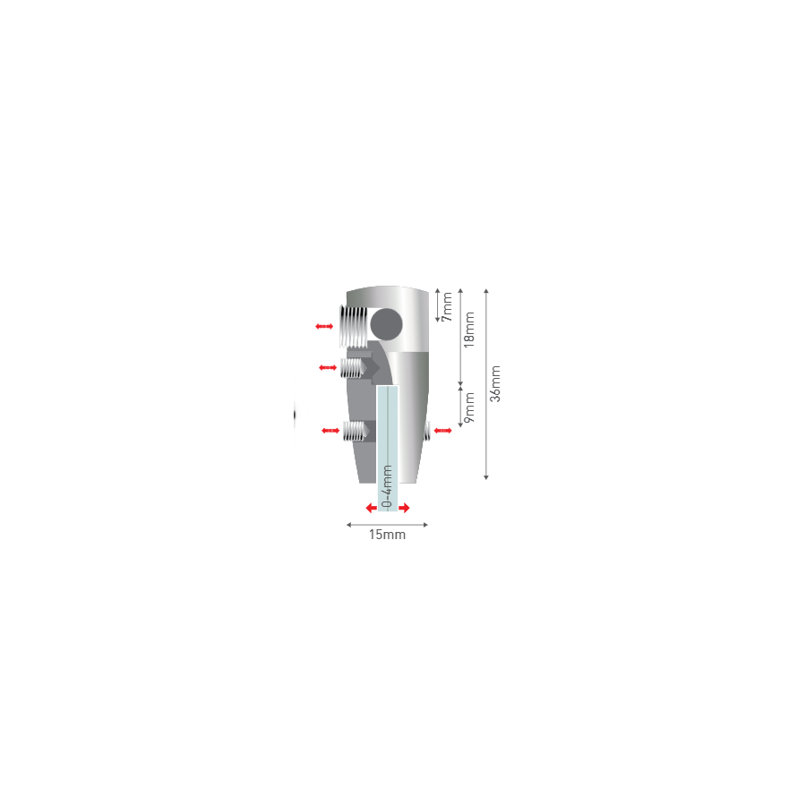 painel lateral suporte para barras. montagem do suporte e painel com parafusos allen. cabeça de suporte é livremente ajustável para montagem vertical, horizontal ou inclinada do painel.