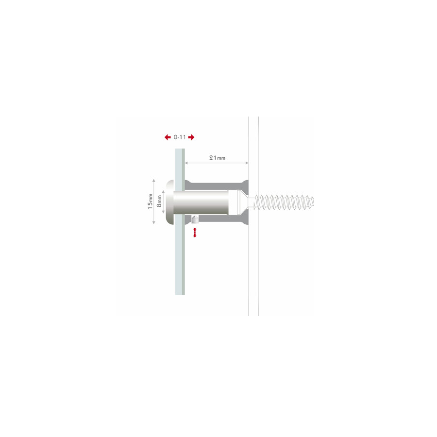 Distanciador de parede para placas de tamanhos médios. monte o fixador na parede, coloque no painel e conecte a cabeça através do painel no fixador. fixe a cabeça no fixador com o parafuso allen. para letreiros, painéis e placas de tamanho médio.