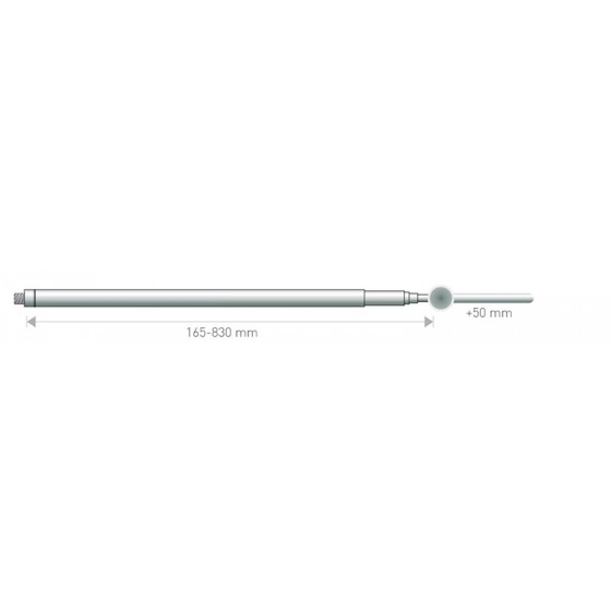 Antena é um suporte modular, ajustável em altura graças ao braço telescópico.