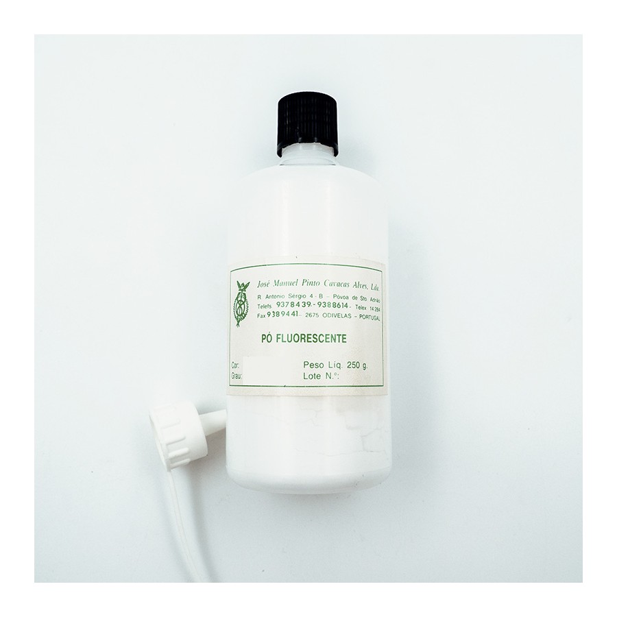 Pó fluorescente Violeta UVC8-M para aplicação em tubos de vidro para neon. Embalagens de 250g.