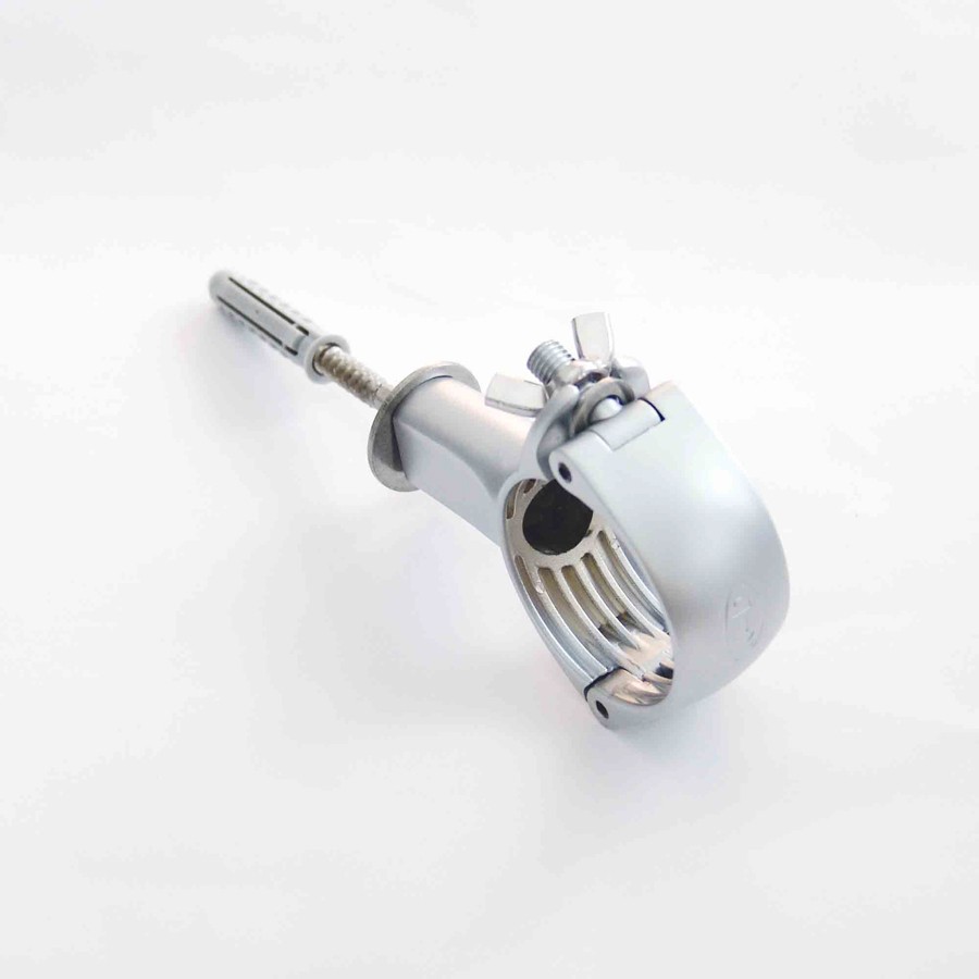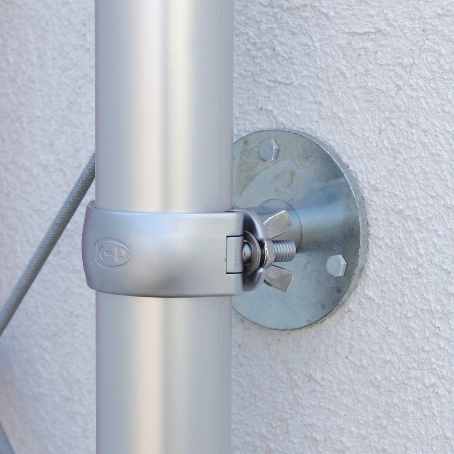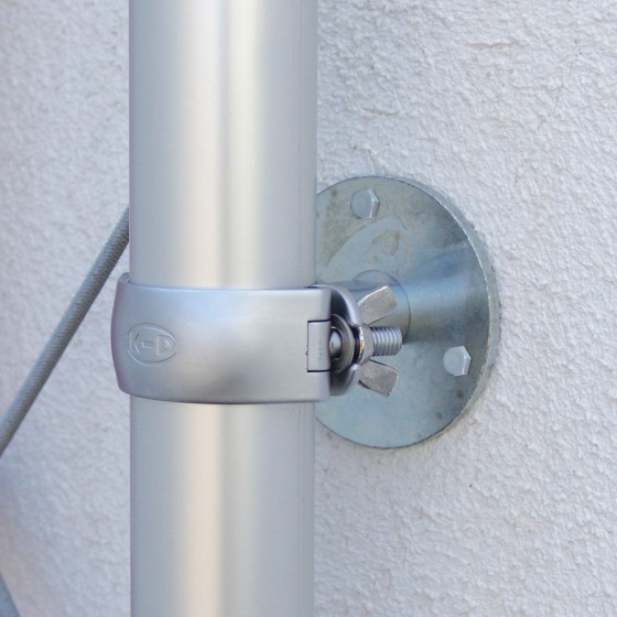 Montagem na parede com acoplamento de alumínio equipado com 1 ou 3 orifícios para montagem na parede. Material de montagem incluído. Disponível em embalagem de 2 peças.