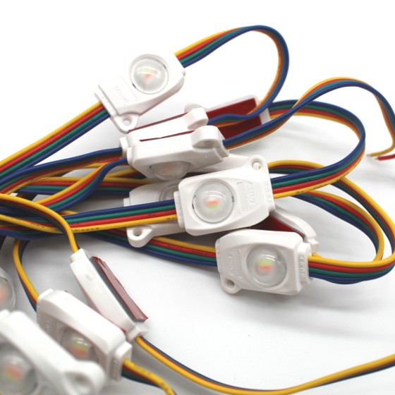 Modulo RGB Mini adequado para aplicações em sinalização e publicidade iluminada, em caixas de luz e channel letters; adequadas para profundidades de 72 a 200mm.