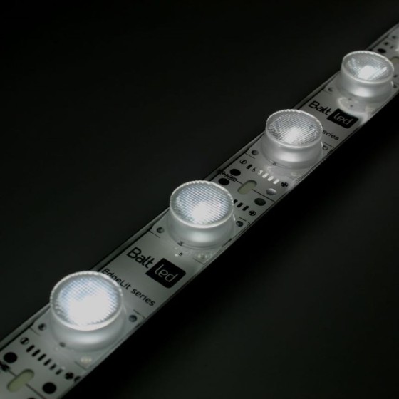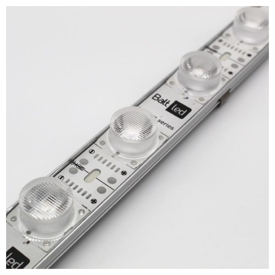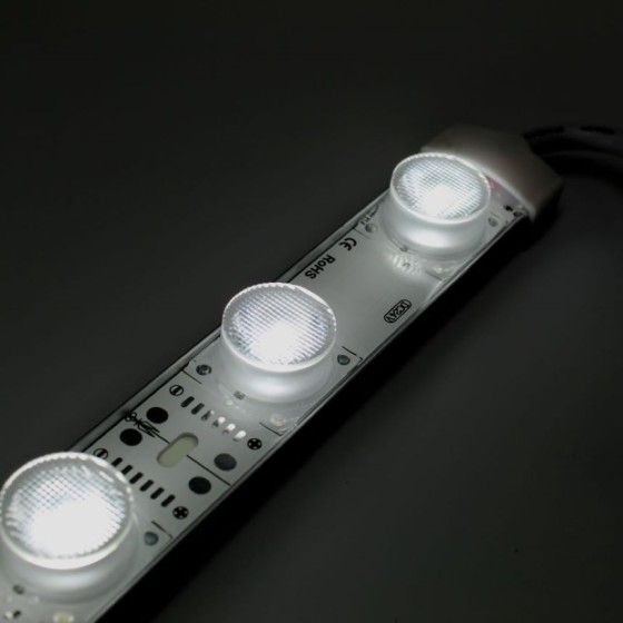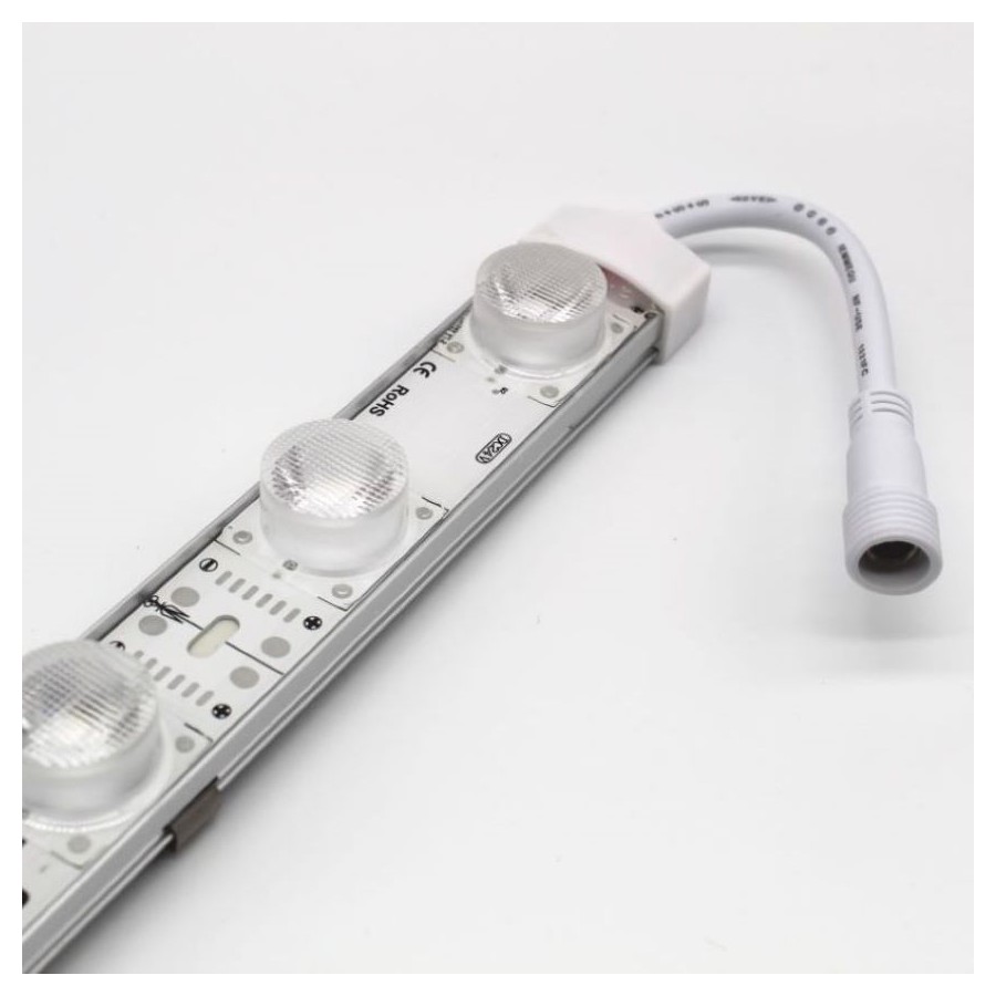 Sistema de Barras de Led rigidas para reclamos e caixas de luz com tecido de pouca profundidade, barras em aluminio, fixação em fita dupla e parafusos. Conectores rápidos entre barras.